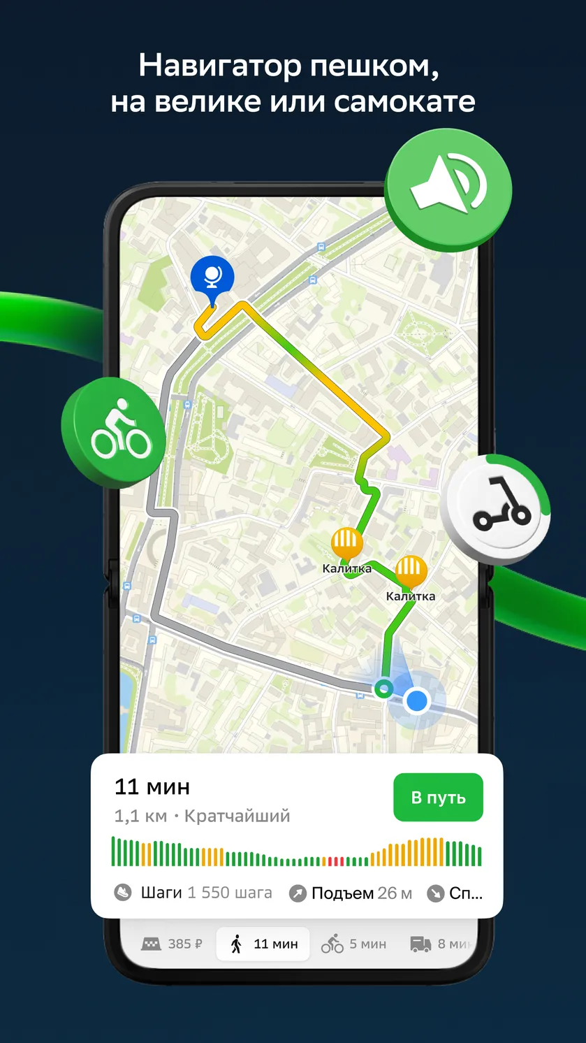 - ✅ Пешеходам – для поиска кратчайшего пути, остановок транспорта и выходов из метро.